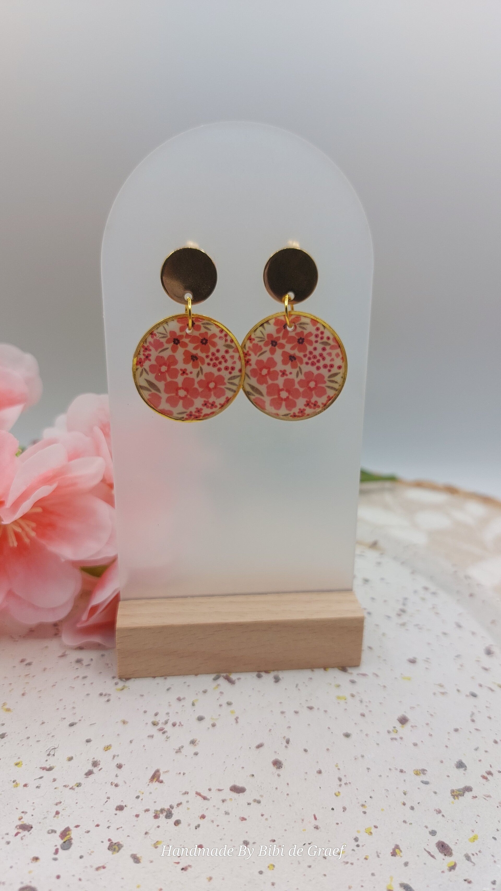 Mooie ronde hanger gemaakt van polymeer klei met gouden afwerking