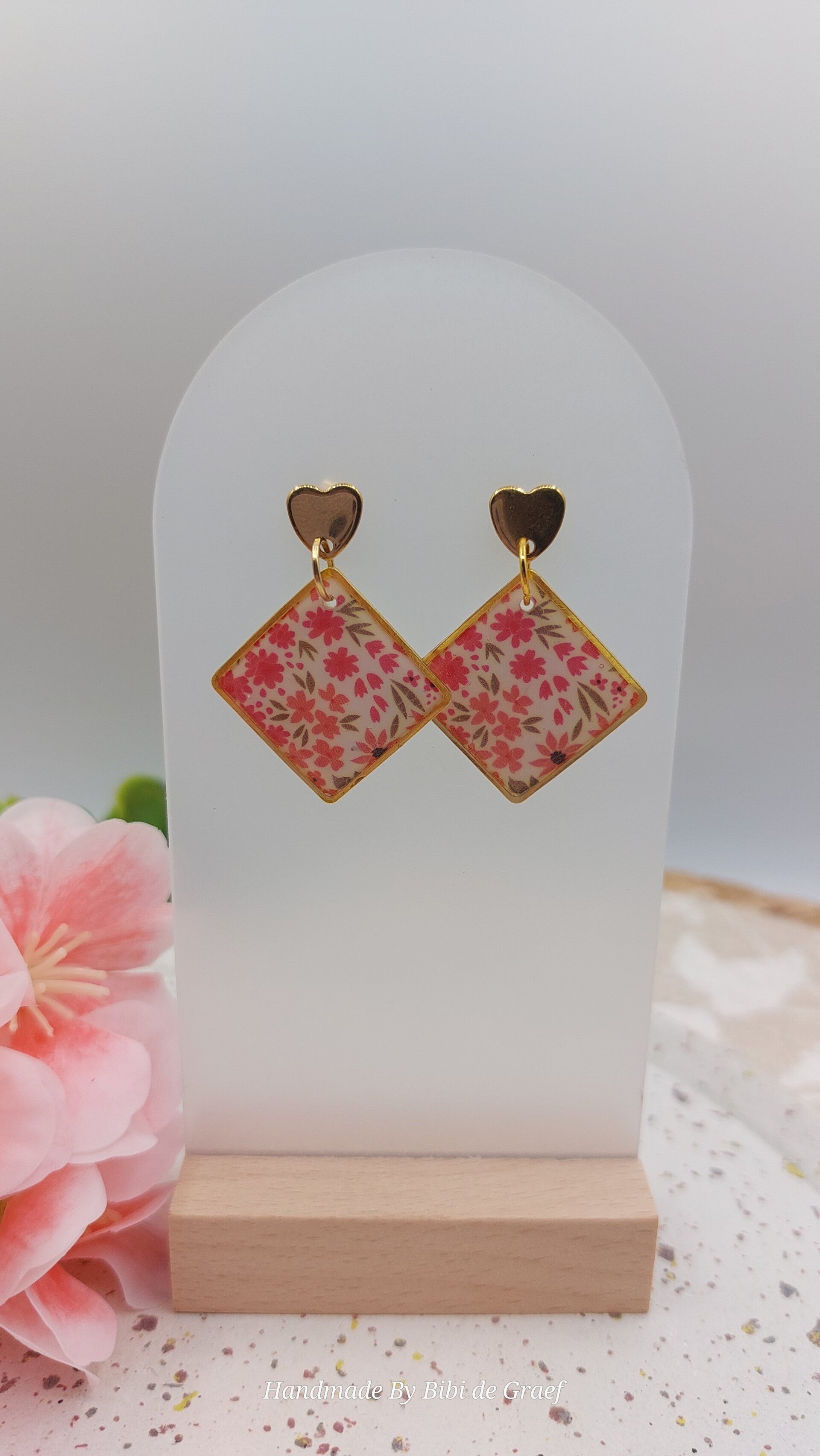 Mooie ruitvormige hanger gemaakt van polymeer klei met gouden afwerking